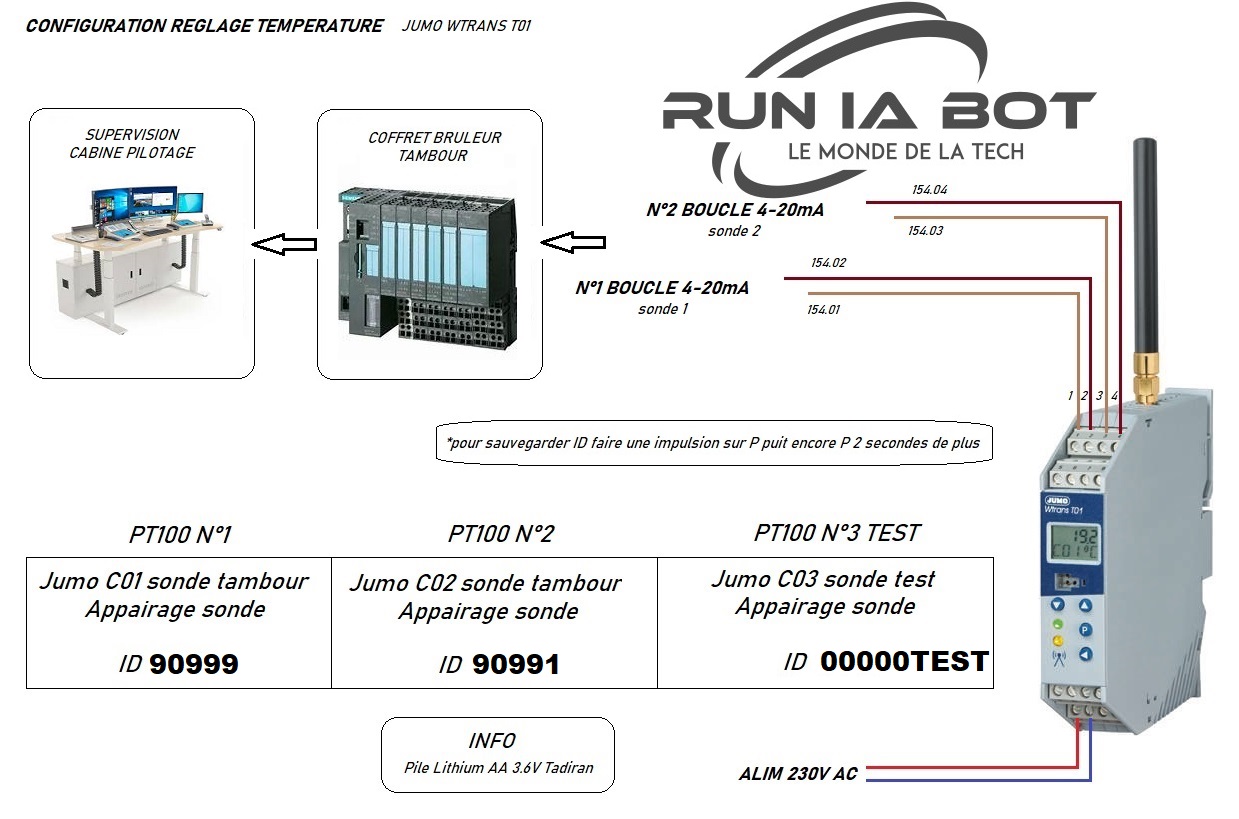 Installation sonde sens fil Jumo pt100 avec module Jumo WTRANS T01
